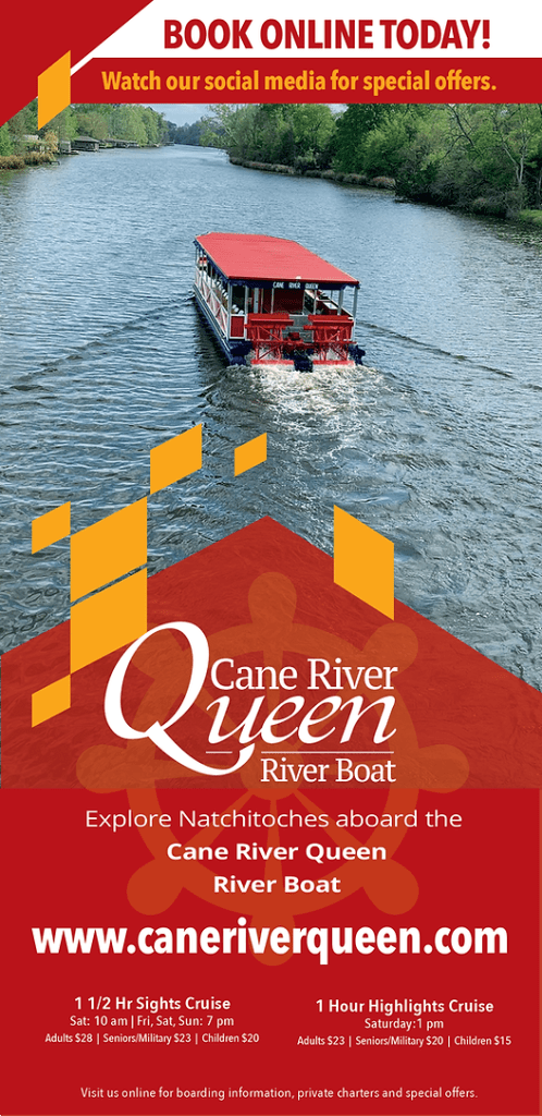 To further amplify the riverboat’s presence, Robin designed eye-catching printed graphics such as posters, flyers, postcards and business cards that effectively promoted the unique offerings of Cane River Queen Riverboat.
